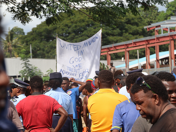 ![Protesters with their banner at Kukum. [Photo: Lachlan Eddie]](https://www.solomonstarnews.com/wp-content/uploads/2021/08/FRONT-PAGE_Protesters-with-their-banner-at-Kukum.-Photo-Lachlan-Eddie.png)