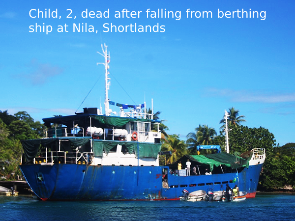 Child, 2, dead after falling from berthing ship at Nila, Shortlands A TWO-year-old boy fell to his death in the early hours of yesterday morning from a ship in the Shortlands Islands, Western Province without the knowledge of his family members. Reports reaching this paper yesterday said a family had boarded the ship ‘MV…