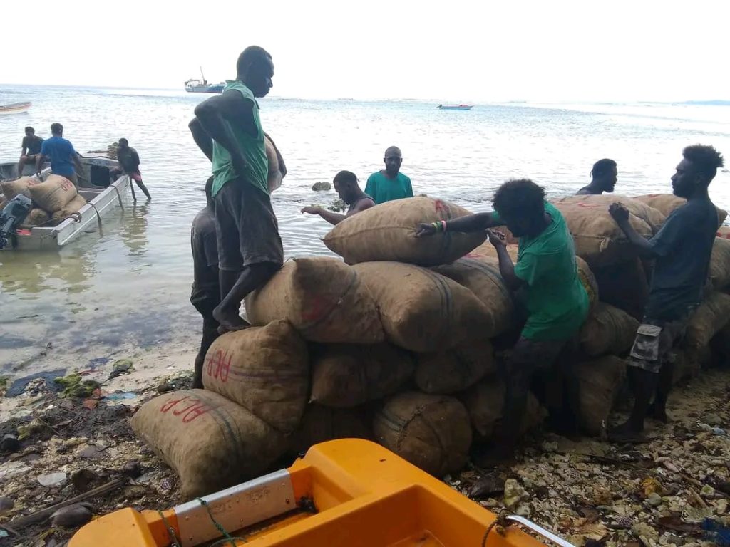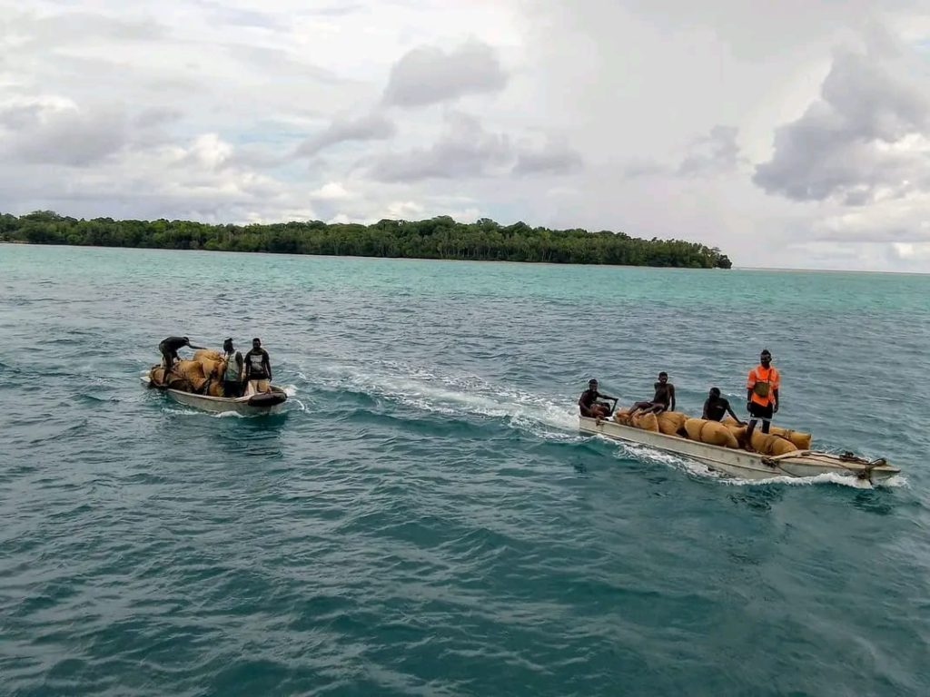Last Wednesday around six boats from Shortlands who are mainly copra buyers traveled over to Kangu in Bougainville to sell their copra bags.