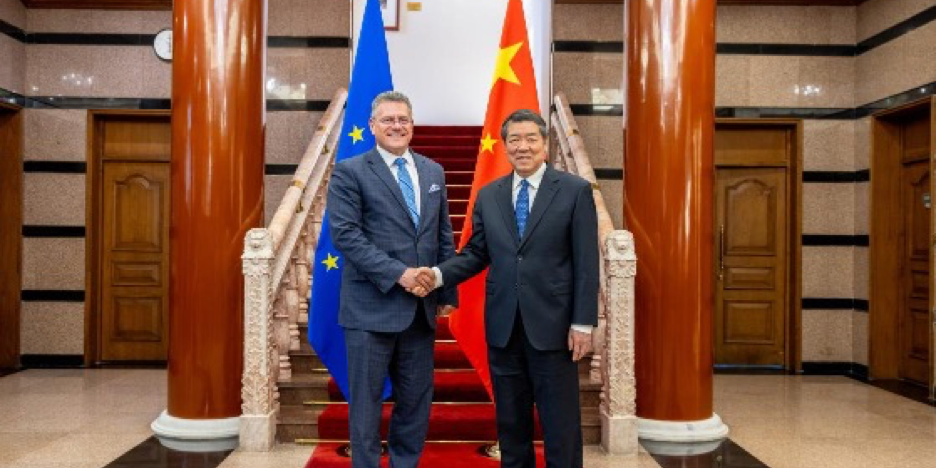 Photo caption: European Trade and Economic Security Commissioner Marcos Sefcovic and China’s Commerce Minister Wang Wentao in China. Photo by EU