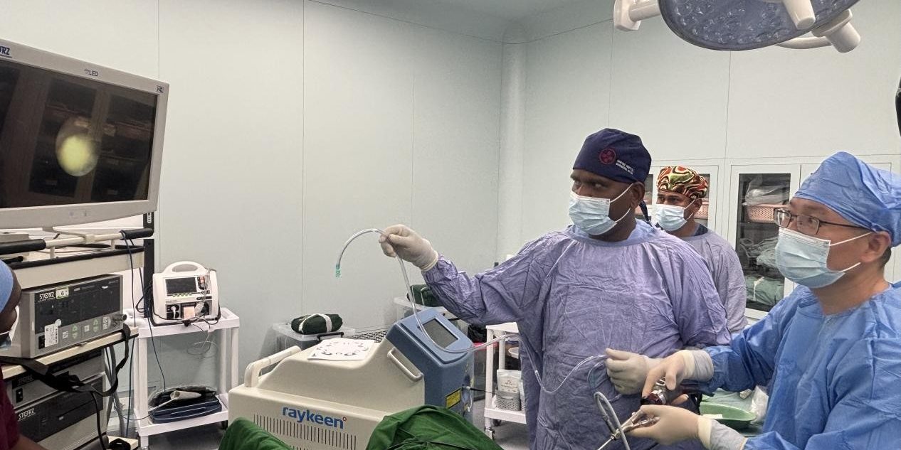 However, after assessment by Zhang Faming, a member of the visiting medical team, and consultation with local clinicians including urology specialist Dr Melly, a holmium laser minimally invasive approach was selected.