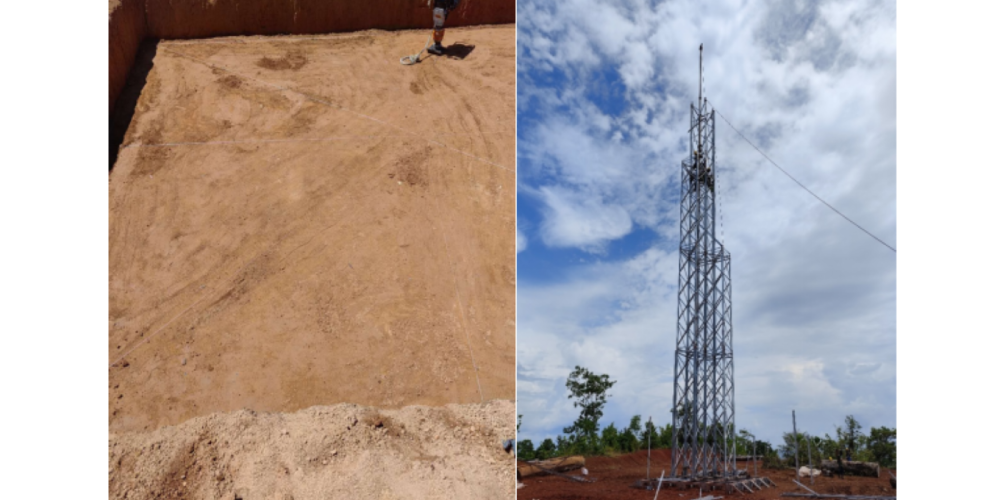 According to project updates, foundation installation is underway at the M14-Kumanibae site, while the tower structure at the M13-Lengatura site has already been completed.