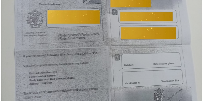 “It has come to our notice that there are vaccination cards that have been faked. We are investigating that there are cards being sold to people and people are actually writing names and putting dates on those cards. They are fake cards.