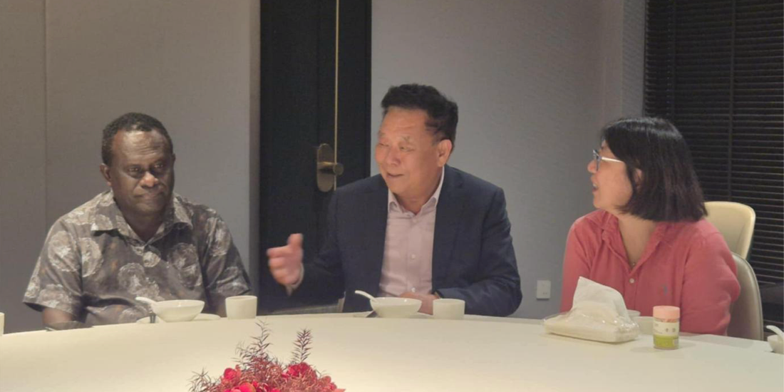 Photo captions: Mr. Mingqing Gao presenting GRML’s operations and future plans with the Deputy Prime Minister and Minister of Communications and Aviation, Hon. Frederick Kologeto in a meeting with the Deputy Prime Minister. Looking on is Nan Wang, a GRML Board member.
