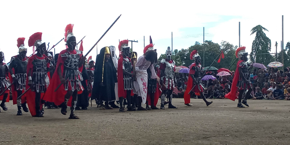 CATHOLICS in the Auki parish, joined by fellow Christians from other denominations, came together in large numbers at Fasitoro on Good Friday to commemorate the crucifixion of Jesus Christ through a moving reenactment led by the youths of Lilisiana.