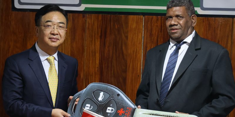 The ceremonial key, marking the donation of the two new vehicles, was handed over to Mayor Eddie Siapu on Friday by the Chairman of the Jiangmen Committee of the Chinese People’s Political Consultative Conference, Zhang Lei.