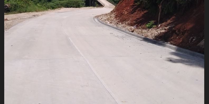 The works completed include the installation of 1,100 m of concrete pavement with drains, drainage and waterway maintenance, grading and re-gravelling, patching and filling of carriageways, and the reinstatement of slopes.