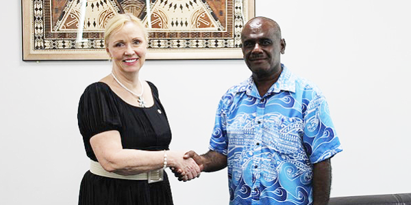Minister Manele and senior officials from MFAET and the Ministry of National Planning and Development Coordination met with the Chair of the IATF and Director of the United Nations Office of the High Representative for the Least Developed Countries (UN-OHRLLS), Ms. Heidi Schroderus-Fox and Programme Management Officer of OHRLLS, Tomas Gonzalez in Honiara on Monday 23rd January.