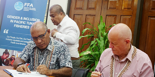 Yesterday, Solomon Islands, Niue and New Zealand signed onto the MoU. Solomon Islands was represented by the Permanent Secretary of the Ministry of Fisheries and Marine Resources (MFMR), Dr Christian Ramofafia, Niue by its Natural Resources Minister Mona Ainu’u and New Zealand by its Resident High Commissioner to Solomon Islands, Jonathan Schwass. The other four states will sign the MoU at a latter date to be confirmed by FFA.