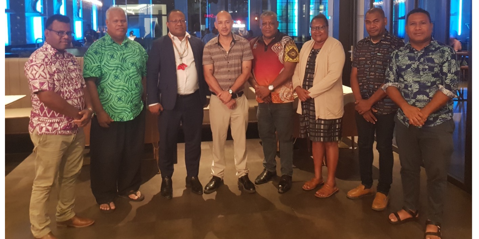 PNG Minister of Sports Hon. Feo Kinoka (3rd from right) and MHA Minister Hon. Isikeli Vave Jnr (4th from right) and senior officials from PNG and Solomon Islands during a dinner hosted by the PNG Sports Minister, Thursday evening.