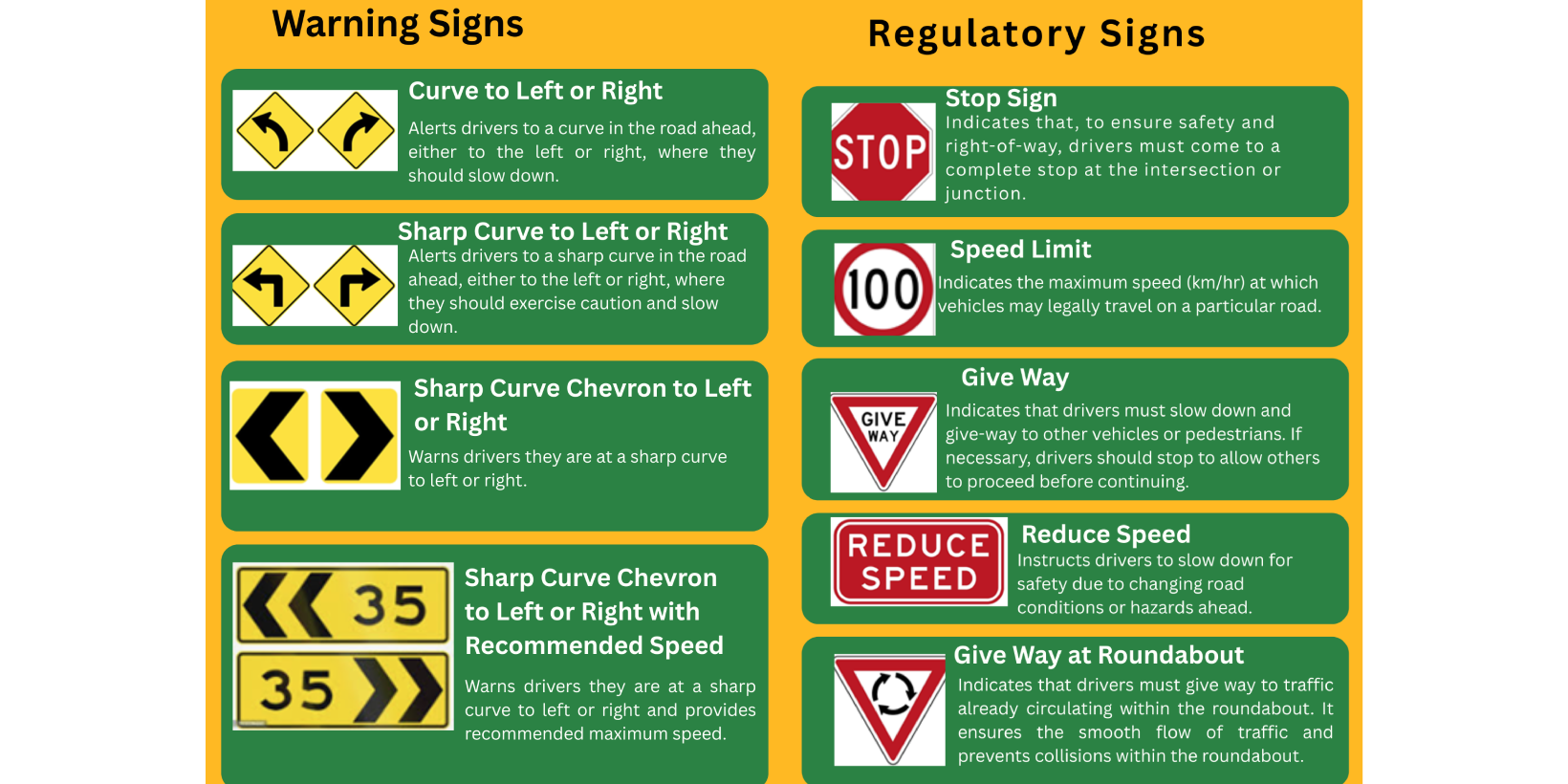 Road users are also encouraged to take time to familiarize themselves with the meaning of different road signs and to comply with the information and instructions provided.