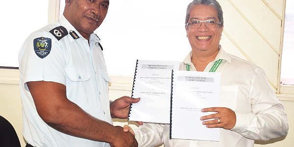 The MoU sets out areas of cooperation including manners of referrals, follow ups, sharing of information and sharing of resources between the Auditor-General, Mr David Dennis, and the Commissioner of Police, Mr Mostyn Mangau.