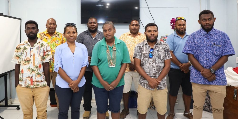 Photo caption: Front row (from left): Principal Planning & Implementation Officer Tex Bambu, MRD HRM Olive Maezama, Principal M&E Officer Noelyn Lausu’u, Principal M&E Officer Manasseh Masa’a, and Principal M&E Officer Gordon Sipa. Not in this photo is Principal Planning & Implementation Officer Solomon Junior Buarafi. Back row (from left): Director Governance, Noel Matea, Deputy Secretary Technical (Acting) George Balairamo, Deputy Director (Acting) Rural Development Division (RDD), Gabriel Manetiva and Director RDD, Milfred Delemani. This photo was captured during an induction session held for the officers recently.