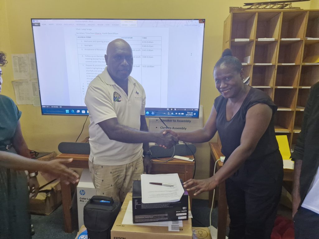 The handover ceremony on Tuesday was held at the Western Provincial Headquarters in Gizo and is aimed at strengthening the operational capacity of youth development offices in the provinces.