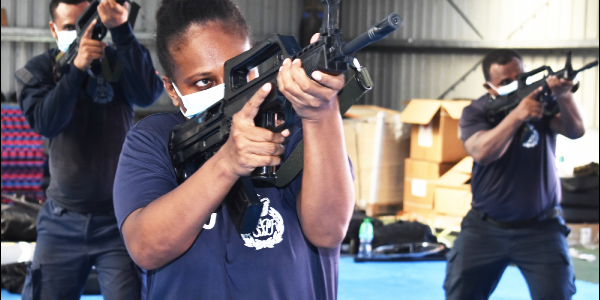 MEMBERS Of the Police Response Team (PRT) on Tuesday for the first time have undergone their first training using the replica guns at the Rove headquarters in Honiara.