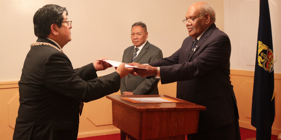 The non-resident Ambassador of the Republic of Peru to the Solomon Islands, His Excellency Mr. Vitaliano Gallardo, presented his letter of credentials to the Acting Governor General, Hon. Patterson J. Oti, at Government House on Wednesday.
