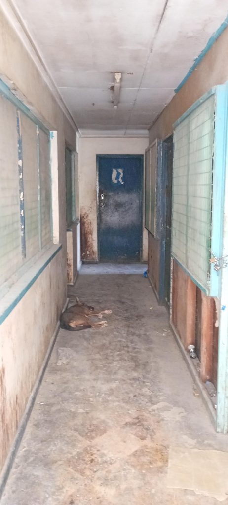 The surrounding environment is also unhygienic, with stray dogs seen sleeping along the corridors.