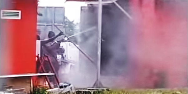 Officers of the Royal Solomon Islands Police Force (RSIPF) at Noro, Western Province, have saved a Telekom company building that was on fire on 7 December 2021.