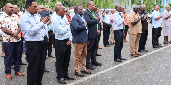 Permanent Secretaries and Deputy Secretaries from the 23 government ministries have joined the care- taker Prime Minister and officials from the Office of the Prime Minister and Cabinet (OPMC) in this morning’s devotion.