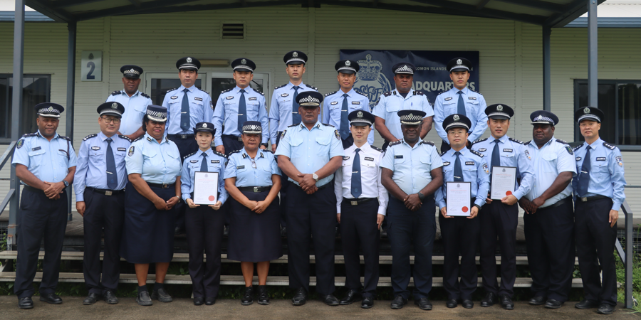 Commissioner Mangau presented them with the Police Commissioner’s Commendation and International Law Enforcement Cooperation Medals in recognition of their exceptional service to the people of SI.
