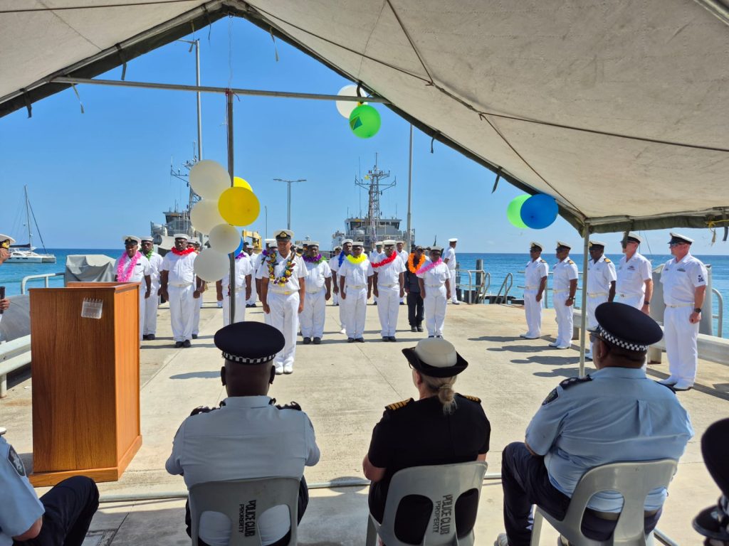 To welcome home Gizo and her crew, senior officials including Permanent Secretary for Police, National Security and Correctional Services Karen Galokale, RSIPF Deputy Commissioner National Operations Ian Vaevaso, Australian Federal Police Commander Hall O’Meagher and Australian Defence Advisor CAPT Emma Griffiths, attended an event at RISPF Maritime Headquarters at Aola Wharf, Honiara.