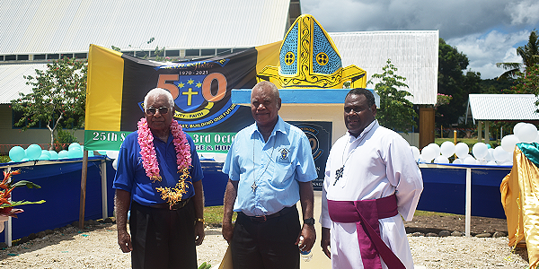 The parade concluded at the school with the blessing and official unveiling of the 50th Golden Jubilee monument by Archbishop Dawea and Sir David.