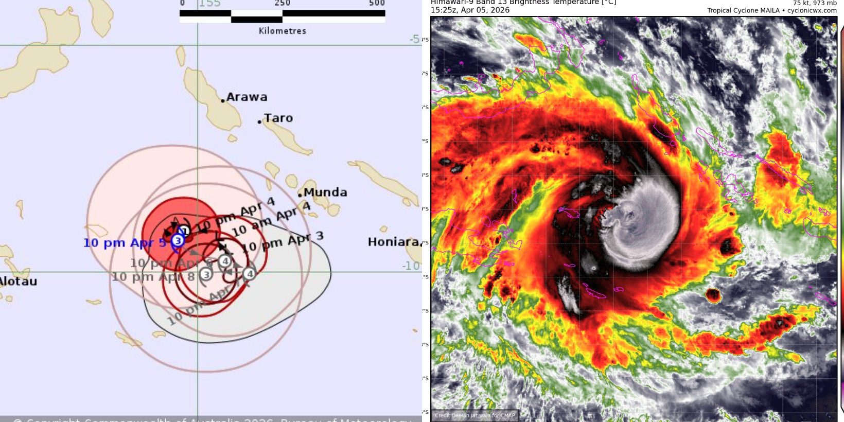 “Cyclone Maila is moving east-southeast towards southwest of Western in the Solomon Sea and intensifying.