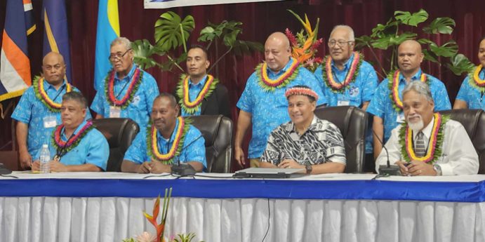 Outgoing Chairman and Solomon Islands Minister of Fisheries and Marine Resources, Nestor Giro handed over the Chairmanship to his FSM counterpart at the 19th PNA Ministerial Meeting in Pohnpei on Tuesday, September 17.