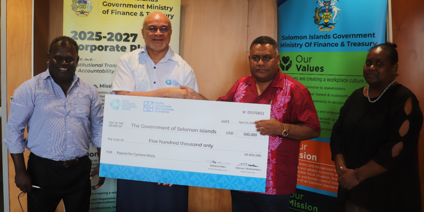 The Solomon Islands Government, through the Ministry of Finance and Treasury, received a USD 500,000 payout from the Pacific Catastrophe Risk Insurance Company (PCRIC) following the impacts of Tropical Cyclone Maila.