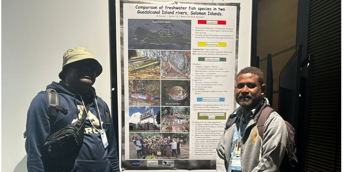 Mr. Robson Hevalao, an environmental and social safeguard expert working in aquatic ecology, presented a poster titled: “Comparison of Freshwater Fish Species in Two Guadalcanal Island Rivers, Solomon Islands.”