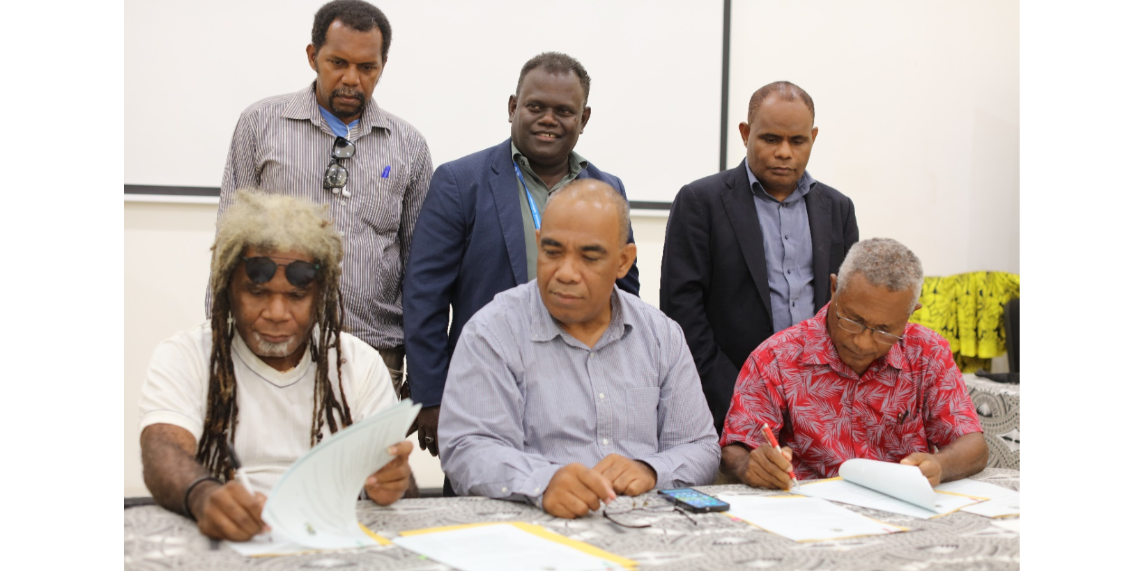 The MA was signed by Dr. Franco Rodie, Permanent Secretary of the Ministry of Education and Human Resources Development (MEHRD), Chair of the SIG Negotiation Team, Dr. Melchior Mataki, and Mr Robert Lafisi, General Secretary of SINTA.