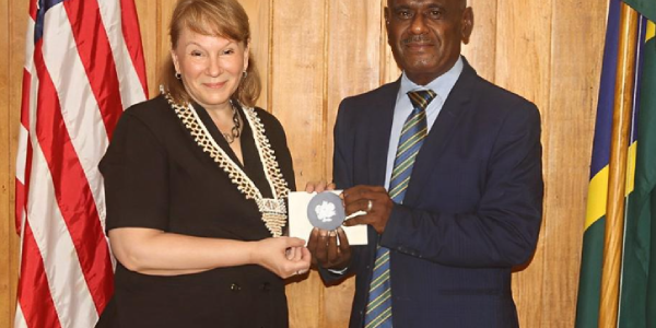 The US Ambassador to Solomon Islands, PNG and Vanuatu, Her Excellency Ann Marie Yastishock has made a courtesy visit on Prime Minister Jeremiah Manele in Honiara today (27 May).