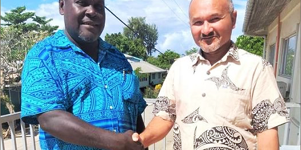 Leader of Opposition Hon. Matthew Wale congratulates the newly elected Premier of Western Province, Hon. Christian Burly Mesepitu.