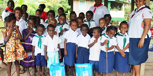 The children, mostly Adventurers from one of the churches in Gizo, prepared flyers which contained two statements “Jesus Loves You” and “Jesus Died for You” plus more than 20 plastics containing small tokens to give to other kids.